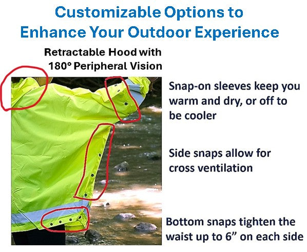 CLUCK FOR HUNTING & ARCHERY VIDEOThe Brella Halstead waterproof, breathable, customizable rain jacket will keep you dry for hours standalone, or longer as your final layer. Total freedom of upper body motion and releasing the side snaps gives you easy access to your water, ammo, binoculars and other items. Your final layer for the tree stand.