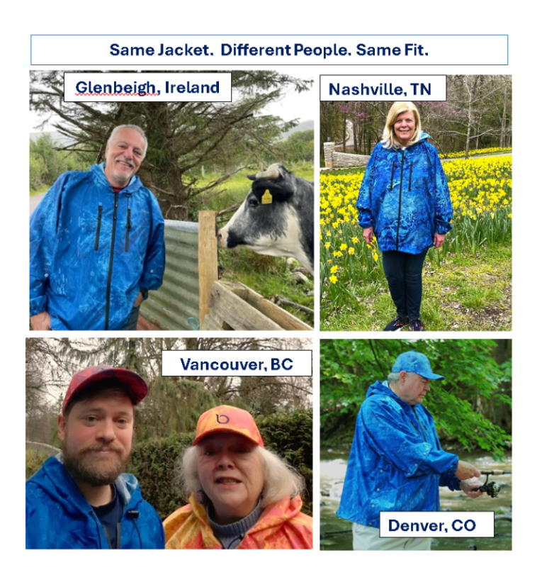 Traditional rain jackets lack customizable options, forcing you to choose sizes, manage returns, and guess whether it will actually fit. Ponchos solve sizing but sacrifice comfort, durability, and style.