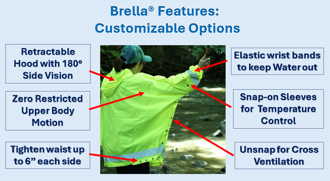 Experience the perfect blend of fashion, sustainability and function for more time in the rain. Unisex, one size fits most, Brellas have customizable options to adapt to changing weather conditions. and your body size.