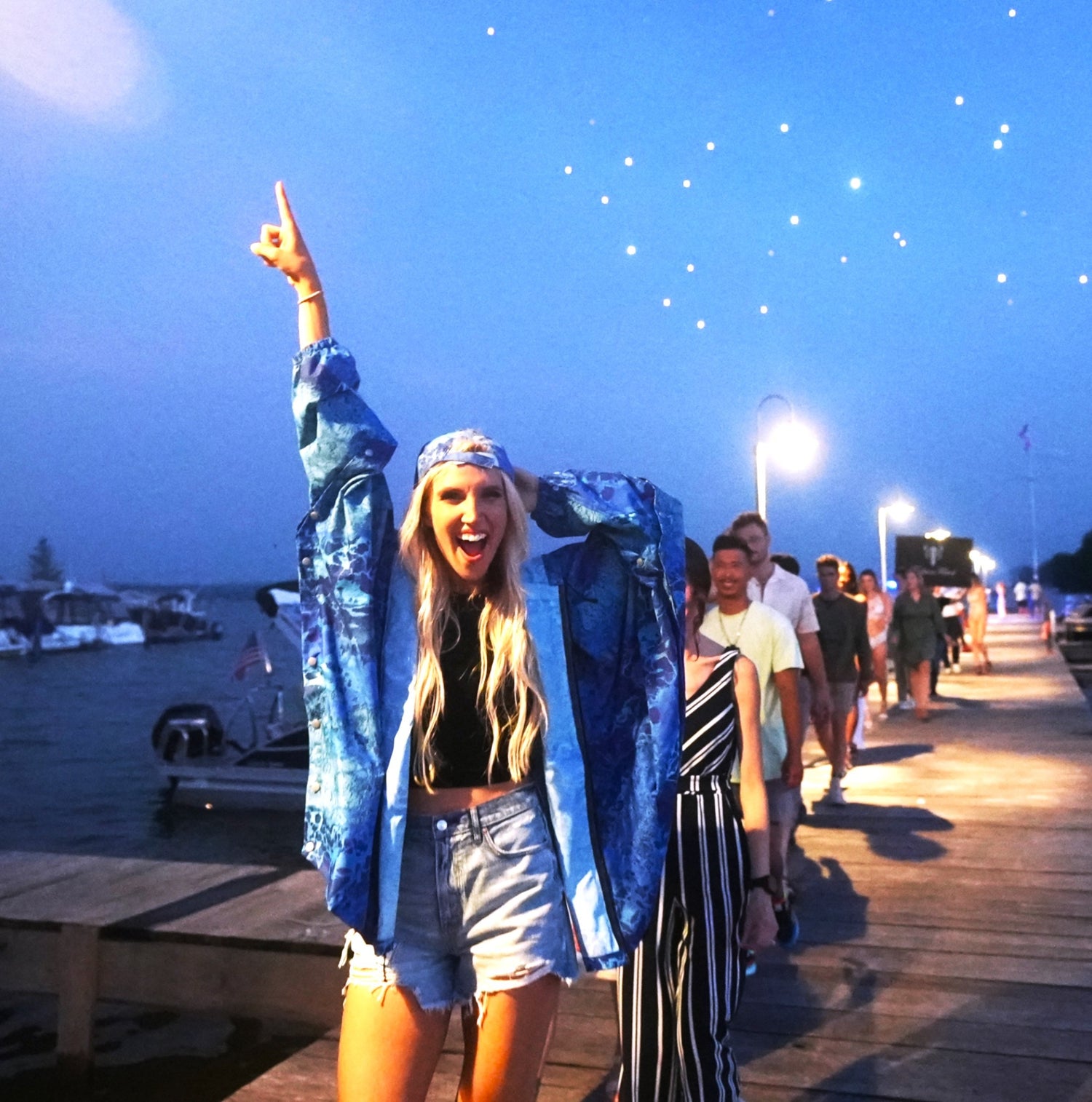 Brella Navy Blue Rain Jacket w/ Stars + Stripes Snap-on Sleeves Unisex